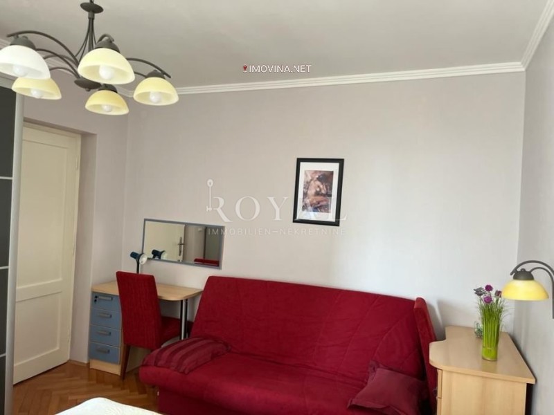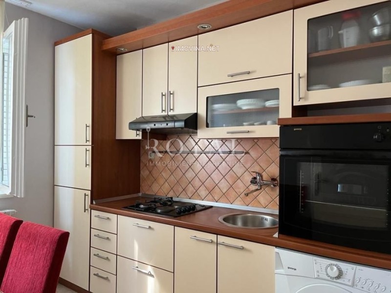 Iznajmljuje se namješten južno orijentiran stan s pogledom na more na 2.katu stambene zgrade. Udaljen je 2-3 minuta hoda do šetnice Lungo mare, 250 metara do glavne gradske plaže i 250 metara do Hotelijerskog fakulteta. Stan se sastoji od hodnika, male kuhinje, jedne veće i jedne manje spavaće sobe i kupaonice sa WC-om. Velika soba je sa bračnim krevetom i KLIK-KLAK trosjedom na razvlačenje a manja soba je sa krevetom za jednu osobu .Svaka soba ima SAT-TV i radni stol. Stan ima vlastito etažno centralno grijanje na struju, klimu uređaj 3,5 KW, neograničen WI-FI, perilicu rublja, mikrovalnu pećnicu, i kompletno posuđe. Ima vlastita brojila za vodu i za struju. Stan je moguće iznajmiti studentima od 1.9.2024.do 1.7.2025. Parking se nalazi ispred zgrade koja ima privatno dvorište.