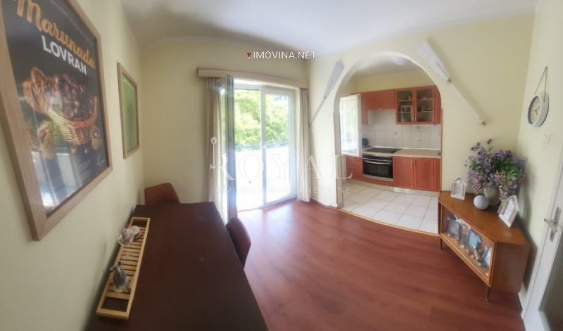 Iznajmljuje se stan u Lovranu, na 1. katu stambene zgrade. Stan se sastoji od hodnika, spavaće sobe sa izlazom na balkon s pogledom na more, dnevnog boravka sa izlazom na balkon (pogled more), blagovaone sa kuhinjom i izlazom na drugi balkon (pogled more/okućnica) i kupaone. Besplatan parking u ulici i ispred zgrade. Lokacija stana je odlična.