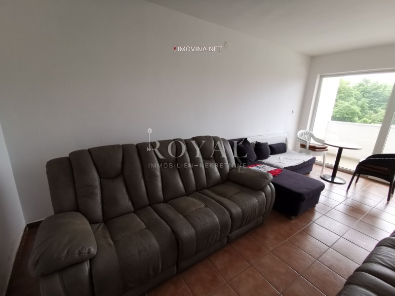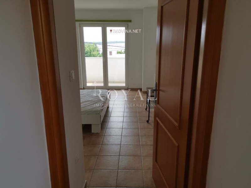 Iznajmljuje se lijep i komforan dvoetažni stan 2S+DB stambene površine 110m2. Donja etaža se sastoji od dnevnog boravka sa izlaskom na balkon, kuhinje sa blagovaonicom i kupaonom. Na gornjoj etaži su smještene dvije spavaće sobe od koje jedna soba ima izlazak na balkon sa kojeg se pruža pogled na more i zelenilo te još jedne kupaonice.