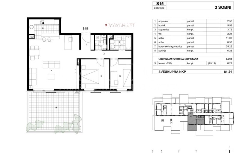 Iznajmljuje se stan površine 81,21m2 u novogradnji u Velikom Polju.