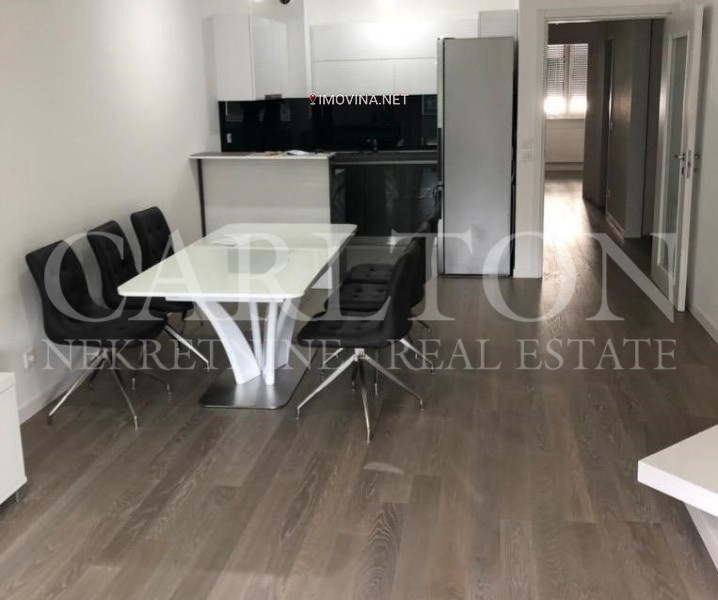 Iznajmljuje se moderno opremljen i namješten, 3s stan, površine 80m2 smješten na 1. katu nove zgrade s liftom, Središće (Bundek). Sastoji se od ulaznog hodnika, dnevnog boravka s kuhinjom, blagovaonicom i izlazom na lođu (7m2), 2 spavaće sobe, 2 kupaonice, praonice.