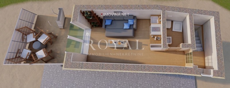 2. kat – garsonijera (25 m²) Spavaći i dnevni prostor, kupaonica i terasa od 10 m².