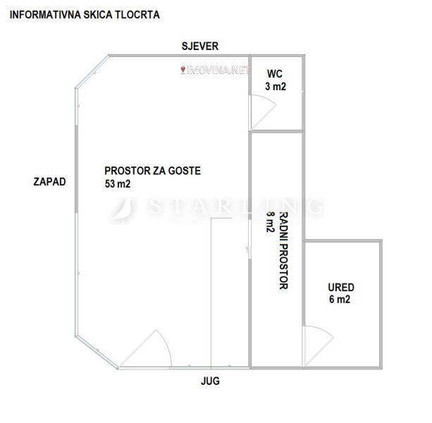 Prostor se sastoji od prostorije za goste, radne prostorije, WC-a i ureda.