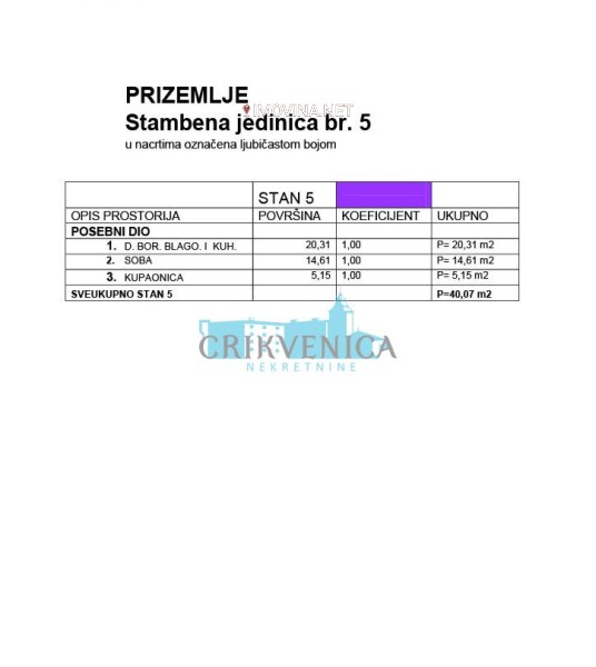 Prodaje se stan površine 40 m², smješten u visokom prizemlju zgrade u fazi adaptacije. Nalazi se na vrlo traženoj lokaciji – samo 500 metara od mora i plaže, te u neposrednoj blizini svih potrebnih sadržaja za svakodnevni život.