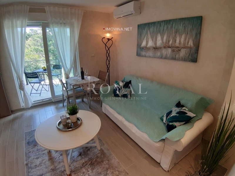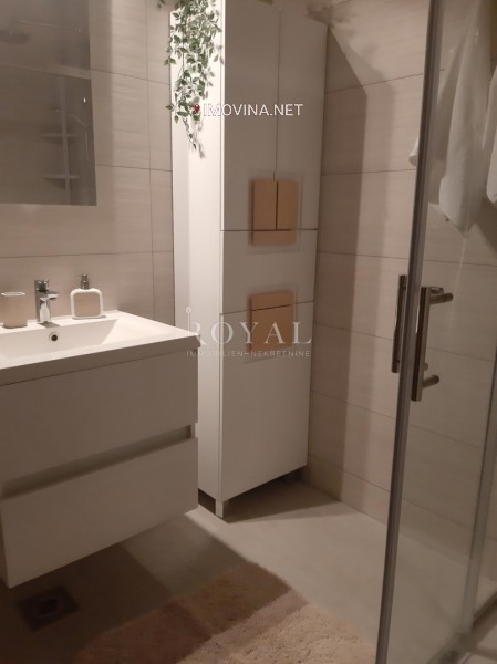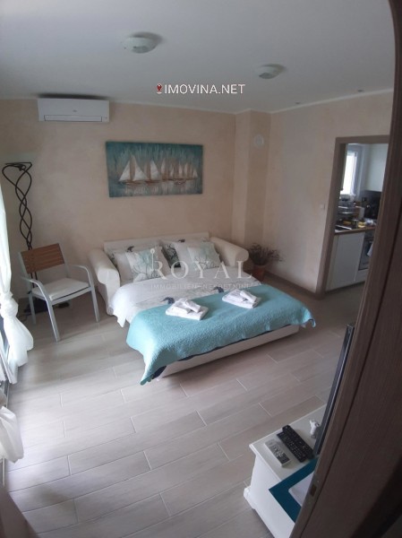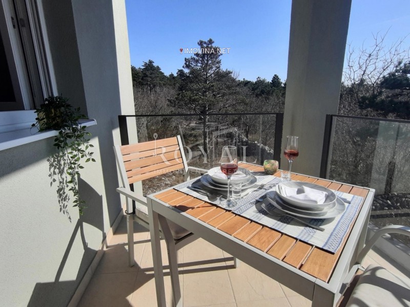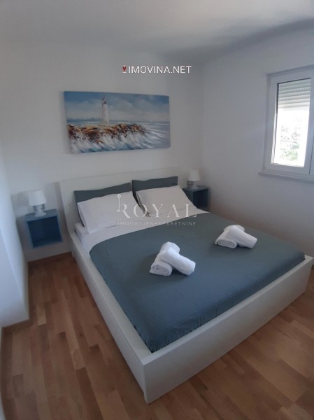 Izdvajamo iz ponude ovaj luksuzni stan koji se nalazi u centru Jadranova, u zgradi u kojoj se nalaze još samo tri luksuzna apartmana – dva u prizemlju i dva na katu. Nalazi se na 1. katu zgrade, kategoriziran je s 4 zvjezdice i sukladno tome potpuno je moderno opremljen. Sastoji se od hodnika, jedne spavaće sobe, prostrane kupaonice s umivaonikom, tušem i visećim wc-om, dnevnog boravka s odvojenom kuhinjom i lođe s pogledom na prirodu. Lođa je veličine 5,5 m2, okružena debelim prozirnim staklom i ugrađenom tendom za zaštitu od popodnevnog sunca.