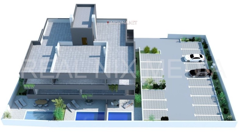 Projekt novogradnje na odličnoj lokaciji udaljenoj svega 100 metara od mora, sastoji se od 10 komfornih stambenih jedinica raspoređenih na 3 nadzemne etaže, te terasama na krovu zgrade. Zgrada se oprema vrhunskim materijalima, podnim grijanjem u kupaonici i dizalom. Raspored stanova i prostorija, omogućuje svim stanarima maksimalnu privatnost.
