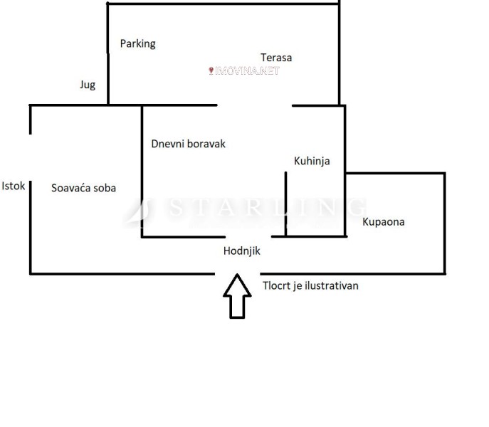 Prodaje se stan u prizemlju veličine 49 m2 koji se sastoji od hodnika, dnevnog boravka s kuhinjom i izlazom na terasu te kupaone.