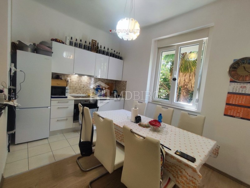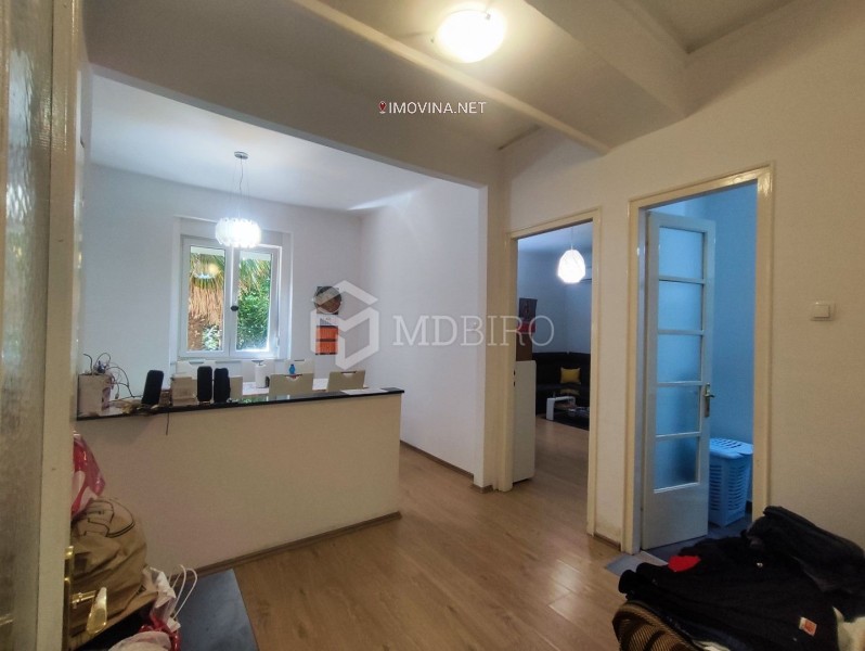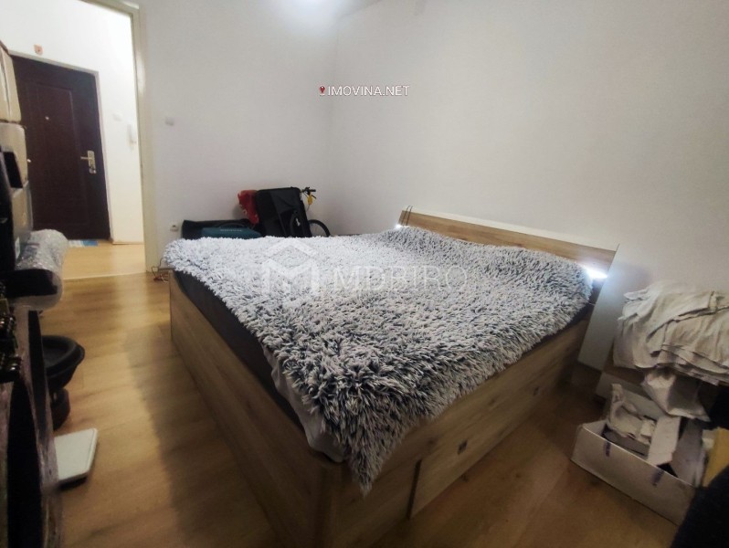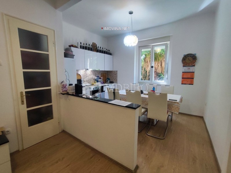 Sastoji se od velike spavaće sobe, komotnog dnevnog boravak, kuhinje s blagovanom, kupaonice s WC-om, ostave i predsoblja. Pred par godina kompletno renoviran. Klima uređaj, PVC stolarija.