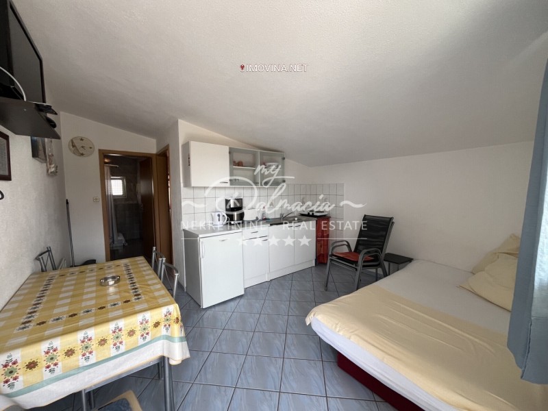 Stan se sastoji od dnevnog boravka s kuhinjom i izravnim izlazom na terasu, zasebne spavaće sobe te kupaonice. Zgrada je starije gradnje, ali se nalazi u urednom i održavanom stanju.