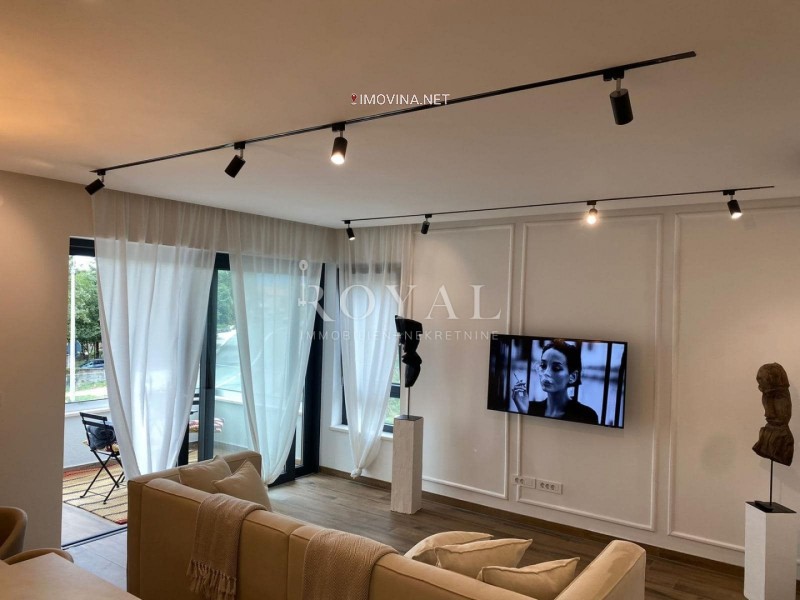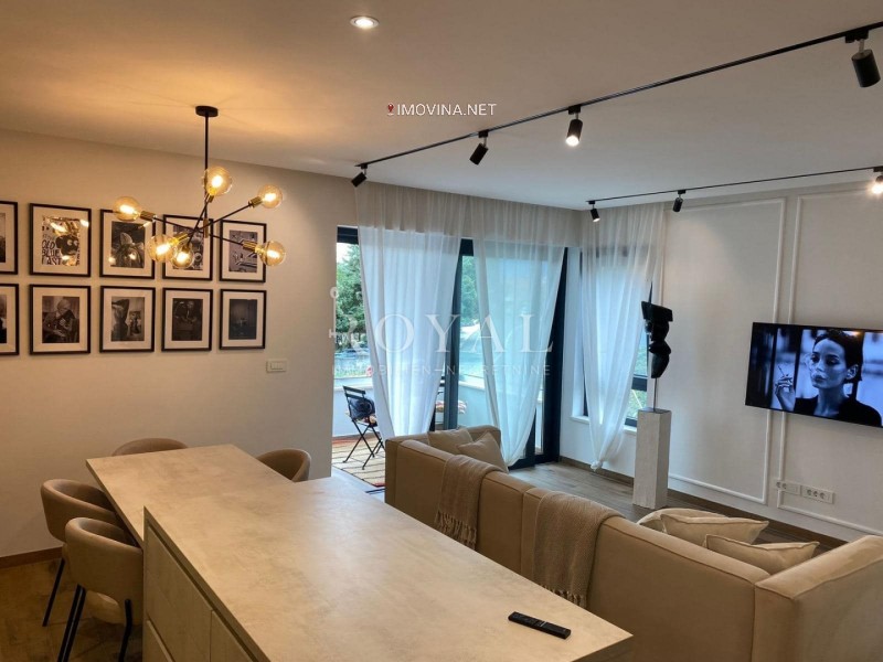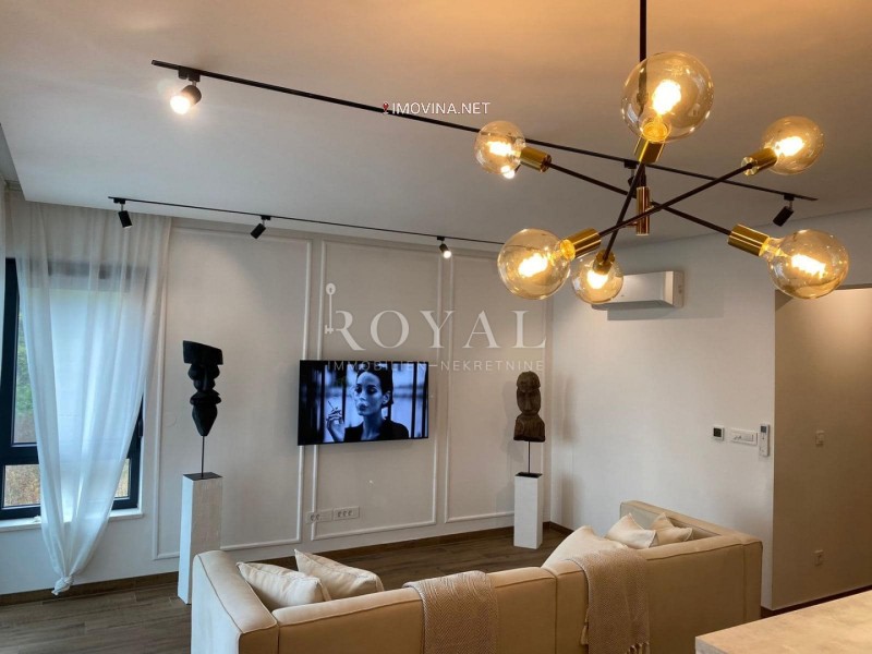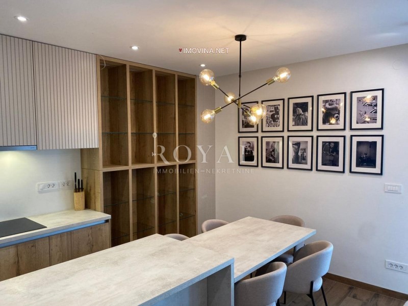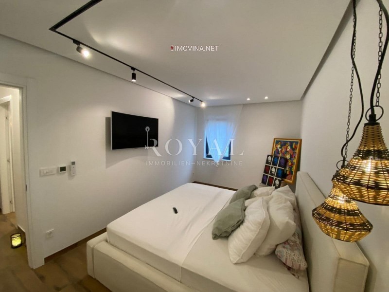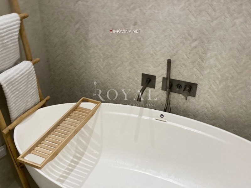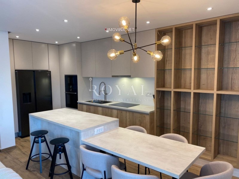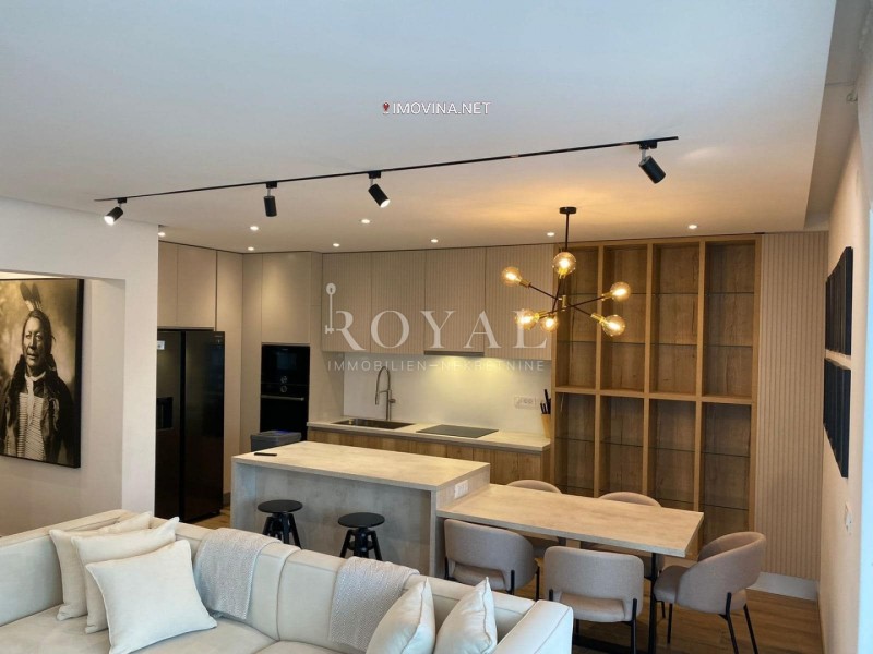 Stan je potpuno namješeten i opremljen modernom kvalitetnom kuhinjom, namještajem, također kupaonskim namještajem u dvije lijepo uređene kupaone.