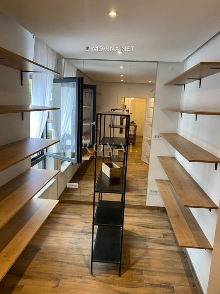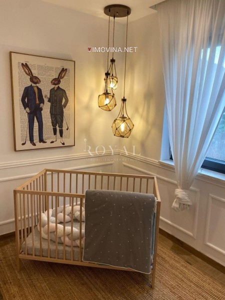 Sastoji se od 2 spavaće sobe, treća soba je uređena kao garderoba, dvije kupaone, vešeraj, dnevni boravak spojen s kuhinjom, te balkon.
