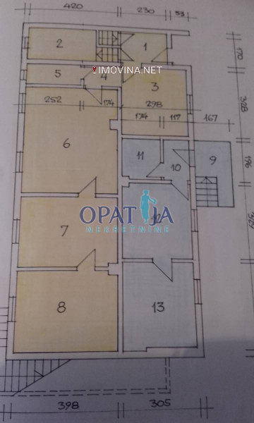 Stan ima 3 povezane sobe, kuhinju, hodnik, kupaonicu, ostavu i podrum u koji se silazi stepenicama iz stana.