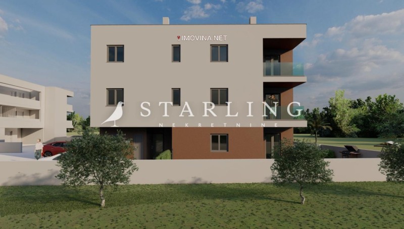 Stan je funkcionalno osmišljen te obuhvaća prostrani dnevni boravak povezan s kuhinjom i blagovaonicom, stvarajući otvoren i svijetao prostor za svakodnevni boravak. Iz dnevnog dijela izlazi se na natkrivenu terasu koja pruža idealno mjesto za odmor i uživanje na svježem zraku. U stanu se nalaze i dvije komforne spavaće sobe te moderno uređena kupaonica.