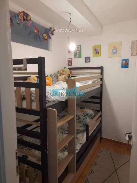 Čine ga dvije velike klasične spavaće sobe, jedna manja soba, kuhinja i dnevni boravak , dvije kupaone te hodnik. Dovoljno stambenog prostora za udobnost svakodnevnog života. Posebno treba naglasiti prostranu terasu sa cca 40 m2 površine sa pogledom na grad i okolicu.