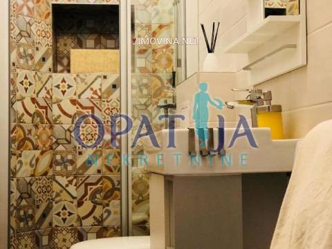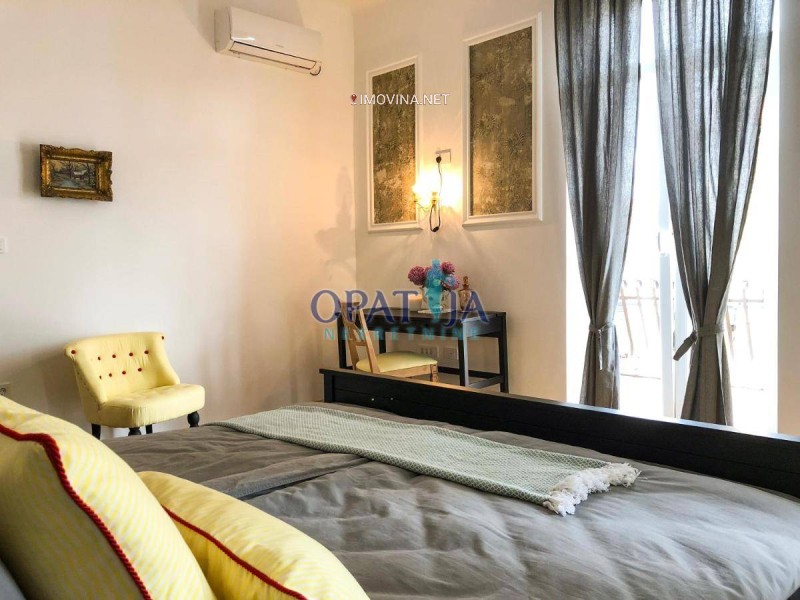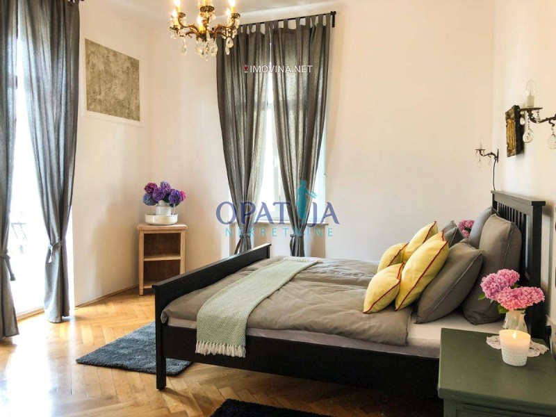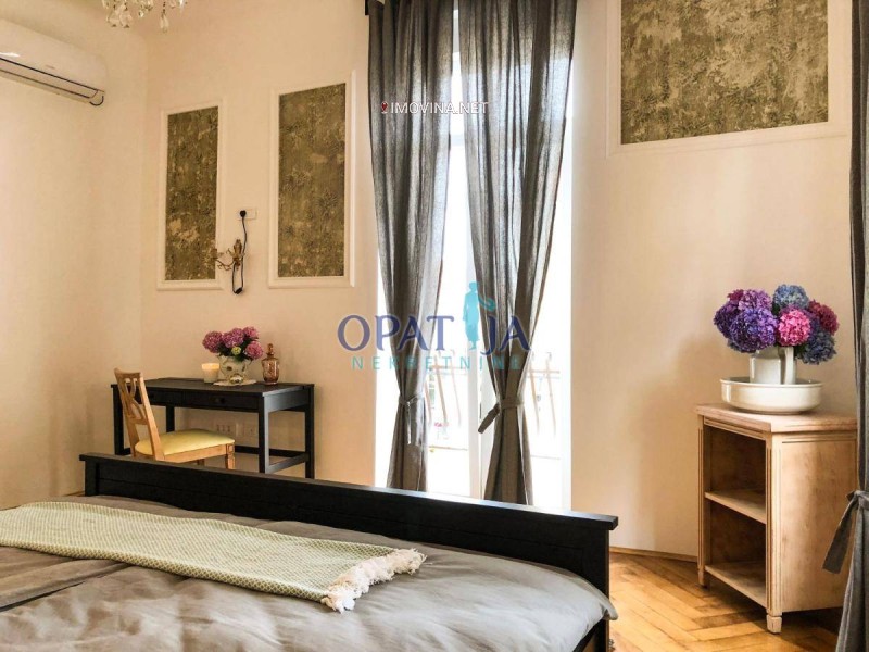 U samom centru Opatije prodaje se prekrasno novouređeni stan veličine 95,38 m2 m2 koji je podijeljen u dva manja apartmana jedan veličine 42,59 m2 i drugi veličine 52,79 m2 sa balkonom. Svaki od ta dva stan sačinjavaju kuhinja sa dnevnim boravkom, spavaća soba i kupaona. veći stan ima balkon. Uz male preinake stan se može biti jedna veća stambena jedinica.