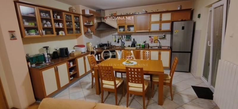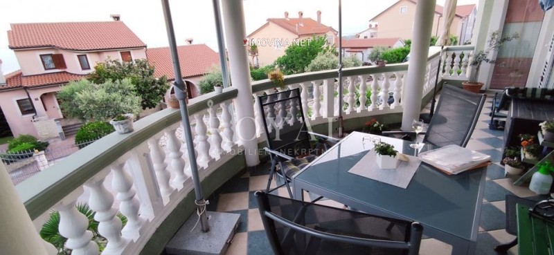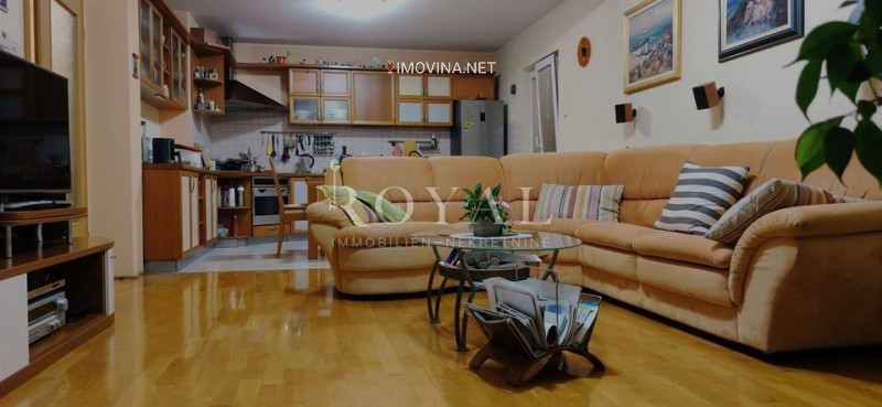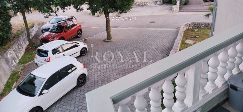 Stan je prekrasan, izuzetno prostran i uredan (108m2), a sastoji se od zatvorene verande- ulaza, hodnika, wc-a za goste, ostave, velike kuhinje sa blagovaonicom i dnevnim boravkom.Tri spavaće sobe i kupaonica sa WC-om čine zasebnu intimnu cjelinu stana. Kuhinja i blagovaonica imaju izlaz na mali balkon, a dnevni boravak i jedna soba na predivnu veliku natkrivenu terasu- lođu sa pogledom na more. Grijanje je etažno centralno (struja) Hlađenje- klima uređaj. Ugrađen je alarmni sustav sa dojavom.