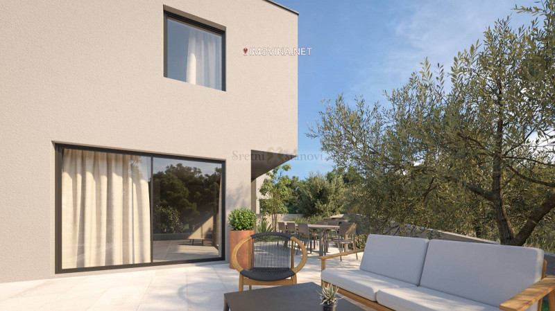 Excellent two-story apartment for sale in Brodarica, in a quiet location, yet close to all important facilities for life, and not far from beautiful beaches and the center of Šibenik. The apartment is currently in the roh-bau phase, and the work is expected to continue in the fall. The apartment is designed as a house on two floors. On the first floor there is a kitchen with a dining room, a living room, three small storage rooms, a toilet and a loggia, and on the second floor there are three rooms, a bathroom, a hallway and a covered terrace. The apartment has air conditioning (for heating and cooling) and underfloor heating in the bathroom. The apartment itself has three outdoor parking spaces, as well as a yard and a garden (all in all about 238 m2). The apartment itself has a total area of 102.40 m2. The construction and ownership papers are in order.