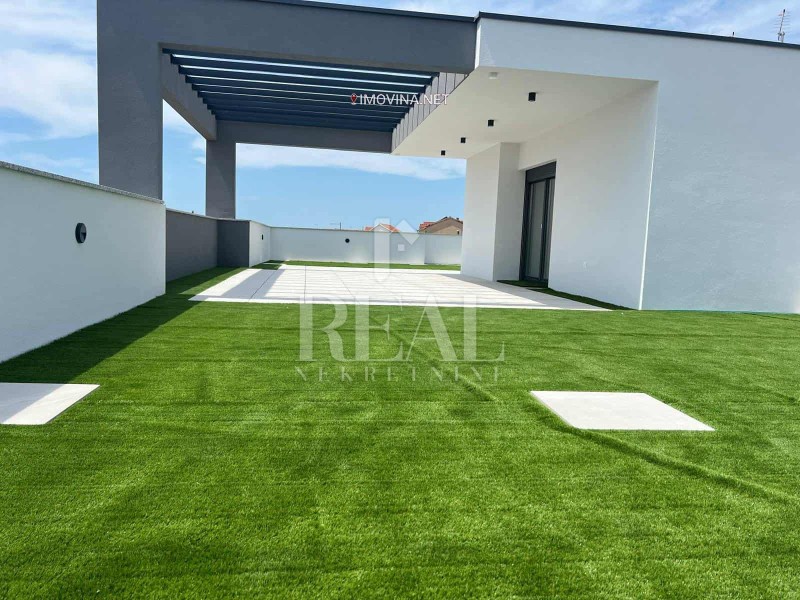 Na top lokaciji usvega 200 m od mora i Plave plaže u Vodicama na prodaju stan koji se sastoji od prizemlja(snevni dio sa kupaonom) prvog kata ( tri spavaće sobe i kupaona ) te drugog kata odnosno krovne terase (153 m2) koja je dijelom natkrivena i na kojoj je wc.