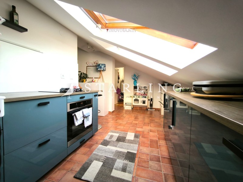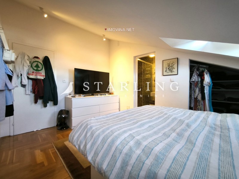 Stan se sastoji od dnevnog boravka s blagovaonicom, kuhinje, tri spavaće sobe, manje galerijske sobe, dvije kupaonice, prostora za walk in ormar, balkona, hodnika, spremišta i vanjskog nenatkrivenog parkirnog mjesta. Spremište koje se nalazi ispod stubišta u prizemlju zgrade, kao i vanjsko nenatkriveno parkirno mjesto su izvanknjižno vlasništvo.