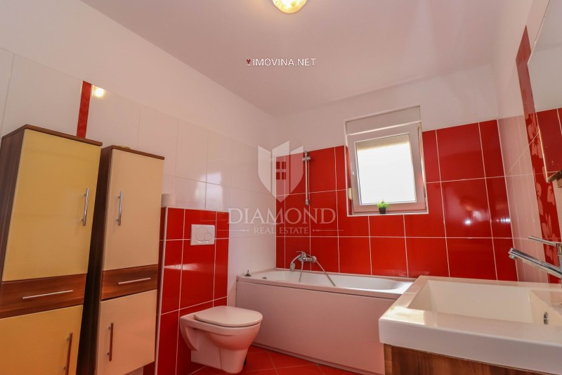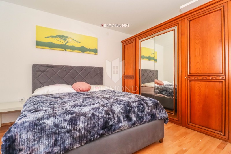 Nekretnina se sastoji od dva zasebna stana, što je čini izuzetno funkcionalnom i pogodnom za različite potrebe – bilo za veću obitelj ili kao investiciju za najam. Veći, komforni stan obuhvaća tri spavaće sobe, prostrani dnevni boravak, odvojenu kuhinju s blagovaonicom, hodnik, veliku kupaonicu te terasu. Drugi stan je studio apartman koji se sastoji od sobe s krevetom, mini kuhinje i kupaonice. Okućnica površine 54,25 m² pruža dodatni prostor za boravak na otvorenom, a nekretnina posjeduje i uporabnu dozvolu.