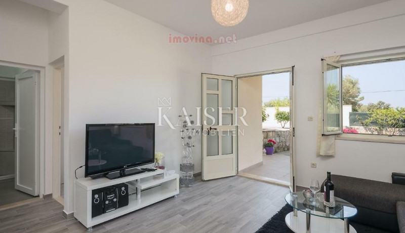 Prostrano dvorište je divna oaza nekretnine, koja pruža privatnost u potpunosti. Posebnu čar pruža sam travnjak, agrumi i mediteransko bilje.
