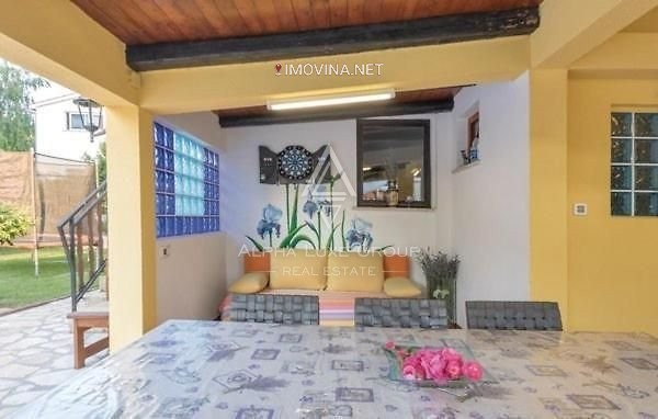 Skrivena na tišini slijepe ulice, okružena bujnom netaknutom prirodom, nalazi se ova obiteljska vila s impresivnih 233m² stambenog prostora, promišljeno raspoređenih na dvije etaže. Prva razina pozdravlja vas prostranim, sunčanim dnevnim boravkom koji se neprimjetno preliva u blagovaonicu i kuhinju, sve do izlaza u pažljivo njegovan vrt. Ovdje, mediteranska flora buja oko prostrane natkrivene terase, stvarajući savršenu pozadinu za druženja ili trenutke mira u osami.