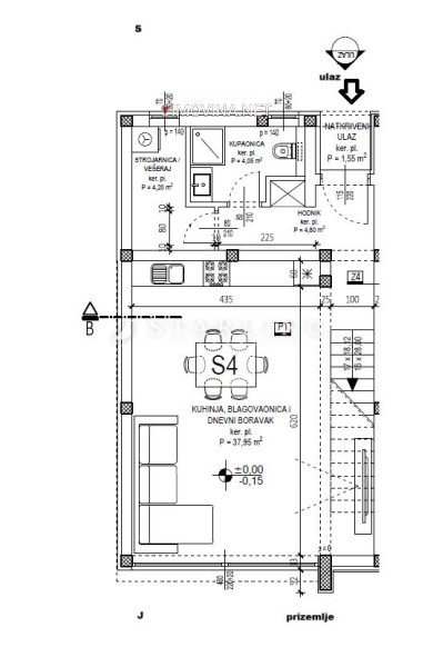 Vanjska stolarija će biti 4S , kliznom stijenom i komarnicima. Ulazna vrata su protuprovalna aluminijska.