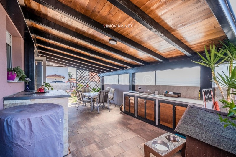 Prodajemo kucu prizemnicu u okolici Pule, koja je smjestena u vrlo mirnom naselju. Ukupna stambena povrsina kuce iznosi 108 m2, a sastoji se od ulaznog predsoblja, kuhinje s blagovaonom, prostranog dnevnog boravka, 3 spavace sobe, kupaone, ostave i lodje s izlazom na natkrivenu terasu gdje je smjestena ljetna kuhinja. Tavanski prostor moze posluziti kao spremiste. Na okucnici ove kuce nalazi se natkrivena terasa od 30m2, zelena povrsina, parking mjesta te dovoljno prostora za izgradnju bazena. Prodavatelj buducem vlasniku ostavlja namjestaj na poklon. Energetska ucinkovitost je A++ te je dovoljan klima uredjaj za potrebe grijanja i hladjenja. U blizini kuce smjesten je supermarket i autobusna stanica, dok je udaljenost od mora svega 6km. , godina izgradnje 2016, prizemlje, plac 480a, voda, struja, odrzavano,uredjeno,uredjeno i odrzavano,useljivo