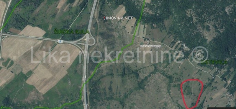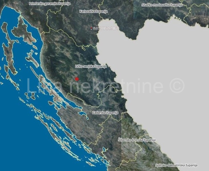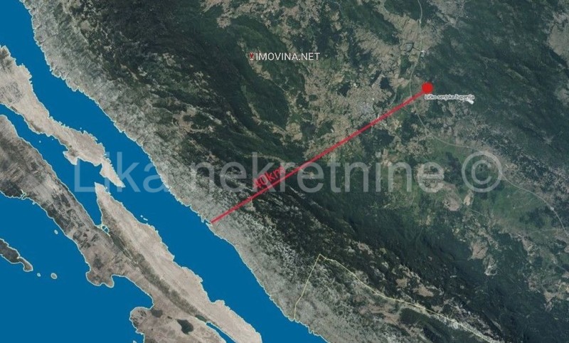 GOSPIĆ - Ostrvica - građevinsko i poljoprivredno zemljište površine 101.270,89 m2. Od toga građevinskog zemljišta 1367 m2 sa ucrtanom kućom u katastru i kućnim brojem ( građena prije "68 ) ostalo livade, pašnjaci i manji dio šume.