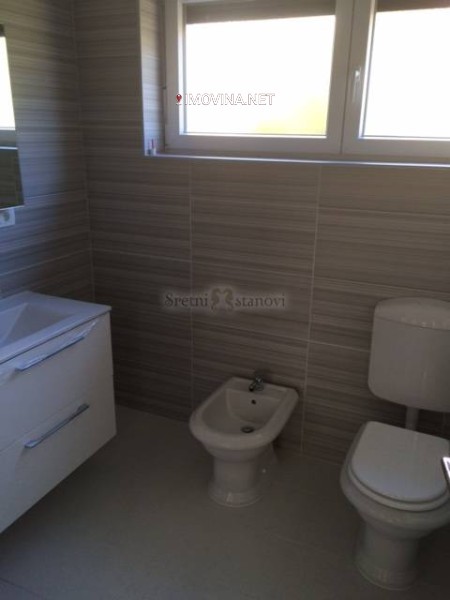 Na ugodnoj i mirnoj lokaciji, u novogradnji , u prizemlju zgrade u ponudi je stan s terasom i velikom okućnicom. Sastoji se od prostranog dnevnog boravka , kuhinje s blagovaonom, velike ostave ili skadišnog prostora, tri spavaće sobe, kupaone, posebnog Wc-a, hodnika , terase i okućnice. Stan je prepun svjetlosti, a za zaštitu od sunca ima rolete. Grijanje je podno i klima . Stanu pripadaju dva parkirna mjesta u zatvorenoj okućnici. U svim su prostorijama SAT TV, Internet i telefon priključci.