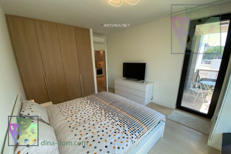 Izdaje se lux-stan od 58m2 u Hercegovačkoj ulici, Beograd na vodi. Stan je dvosoban i sastoji se od jedne prostrane, spavaće sobe, kuhinje sa dnevnim boravkom(open-space), kupatila i terase. Potpuno je namešten i opremljen svim aparatima bele tehnike neophodnih za komforan život (od mašine za veš do posuđa i posteljine). Nalazi se na prvom spratu zgrade od pet, sa centralnim grejanjem, liftom i portirnicom. U neposrednom okruženju su najsavremeniji vrtić, škola, stajališta javnog prevoza, a nedaleko je i TC Galerija. Lokacija je izvanredna i sve kulturne ustanove i poslovnice najrazličitijih kompanija su ili u blizini ili su lako dostupne. Cena mesečnog zakupa je 1000 evra, a moguće je zakupiti i garažno mesto. Agencijska provizija je 50% od prve mesečne rente.