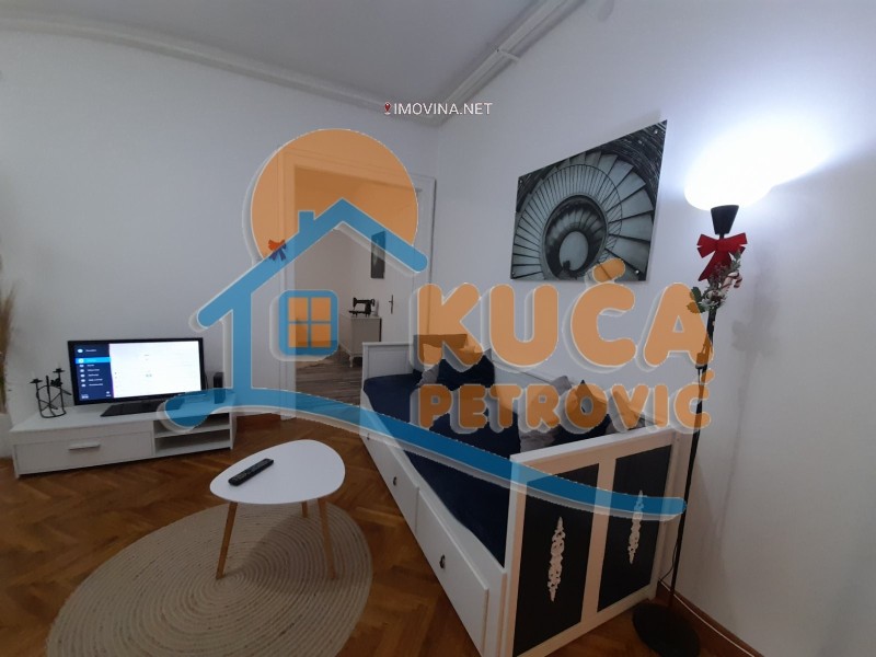 Izdaje se jednoiposoban stan u epicentru grada, sa parking mestom obezbeđenim rampom. Stan se nalazi u zgradi starije ali dobre gradnje, na drugom spratu bez lifta, površine 50m2 i sastoji se iz ulaznog hodnika, kupatila sa smart bojlerom, mašinama za sušenje i pranje veša, dnevnim boravkom sa trpezarijom i kuhinjom koja je opremljena kompletnim posuđem i spavaće sobe sa francuskim ležajem. Grejanje je etažno sa sopstvenim kotlom na struju, a postoje i inverter klima u spavaćoj sobi i jedna obična klima u dnevnom boravku. U stanu postoje internet i kablovska, koji su besplatni do septembra 2025. Stan je vrlo komforan i pogodan za mlađi par ili poslovne ljude. Izdaje se ozbiljnim zakupcima na duži vremenski period. Obavezan je depozit u visini jedne mesečne kirije. Agencijska usluga je 50% od prve kirije, jednokratno. Za više informacija, kao i zakazivanje razgledanja ovog stana, javite se na telefon agencije. Ovu, kao i druge nekretnine možete pogledati na našem sajtu. Čekamo Vas!