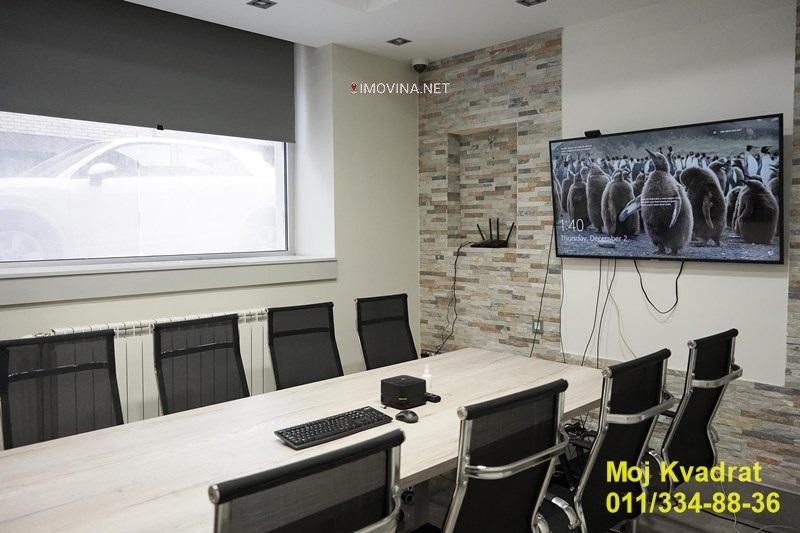 Ima veliku konferencijsku salu, dve zasebne prostorije, dva mokra čvora, magacin. Izlog ka ulici.