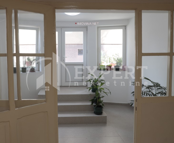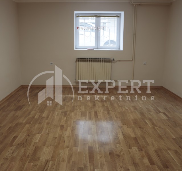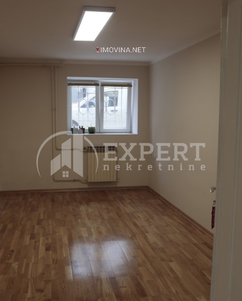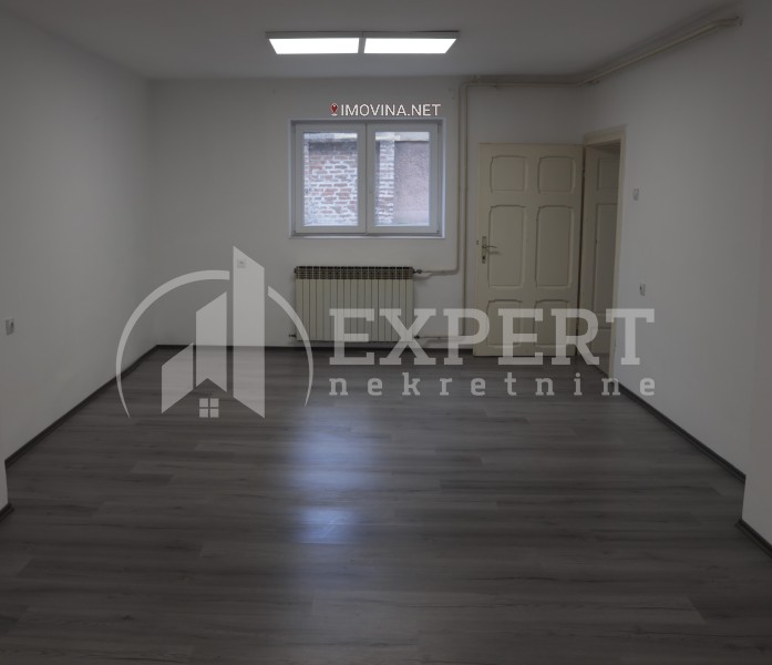 Izdaje se neopremljen poslovni prostor u suterenu kuće površine 122m2 u centru grada. Sastoji se od četiri kancelarije, opremljene kuhinje i dva toaleta. Prostor