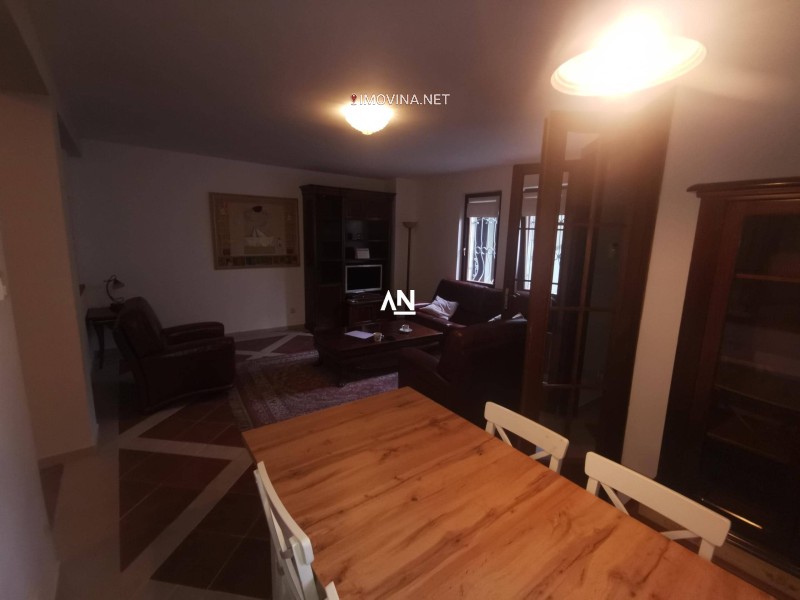 U prilici smo da Vam ponudimo 3.0 kompletno opremljen stan sa nameštajem i pokućstvom od 110m2 sa velikim dvorištem i parkingom za 3. automobila sa alarmom. Stan se nalazi u prizemlju trospratne porodične zgrade u mirnoj ulici Bilećkoj u blizini Trošarine sa mnoštvom gradskog prevoza (autobusi i tramvaji na 100m od zgrade u ulici Vojvode Stepe i ulici Bulevar Oslobođenja). U okolini stana su fakulteti, marketi, Banjička šuma kao sav neophodan sadržaj koji život čini lakšim. Odličan raspored stana: ulazni hodnik, prostran dnevni boravak sa trpezarijom, prolazni hodnik, kuhinja sa šankom i toalet, dve spavaće sobe u izdvojenom spavaćem bloku (delimično ukopane), kupatilo sa đakuzijem i dvorište u zelenilu (kapija za pešake i kapija za kolski ulaz). Grejanje je centralno a cena infostana je oko 17.500 dinara. Cena mesečnog zakupa je 1.200 evra. U cenu zakupa su ukljuceni internet i kablovska televizija. Mesečno plaćanje+depozit u visini mesečnog zakupa. Agent Dušan 060/069-0692 Agencijska provizija se placa u skladu sa opštim uslovima poslovanja.