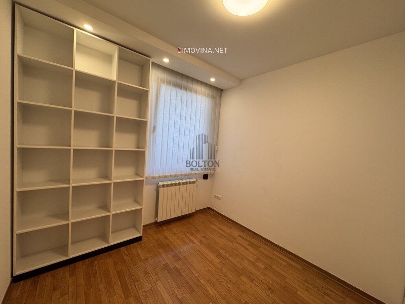 Enterijer je upotpunjen ugradnim plakarima koji pružaju dovoljno prostora za odlaganje. Zahvaljujući svojoj strukturi i lokaciji, stan je izuzetno pogodan i kao poslovni prostor, poput kancelarije, agencije ili ordinacije.
