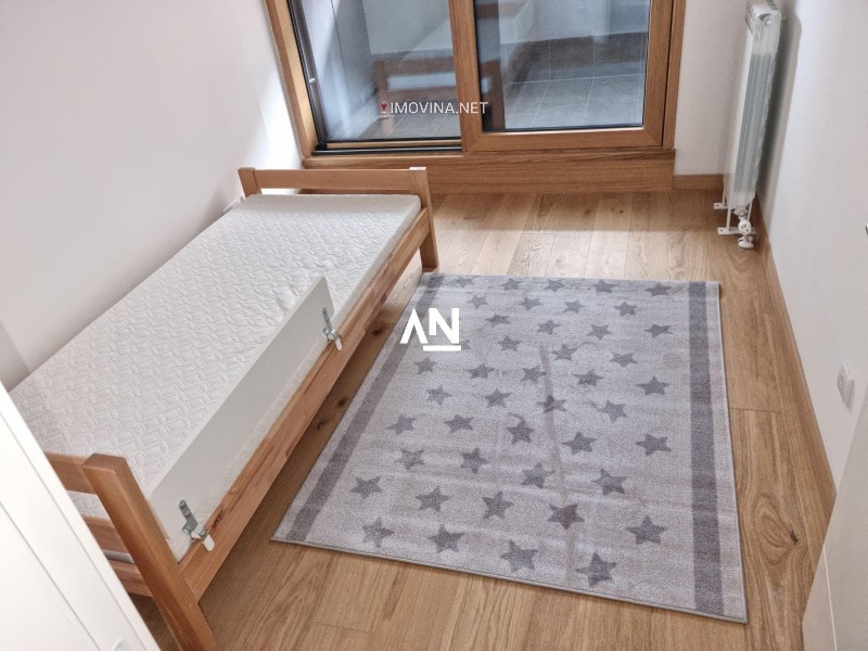 Stan je po strukturi trosoban i poseduje dva kupatila. Manja spavaća soba biće opremljena prema potrebama zakupca (kao radna ili dečija soba).