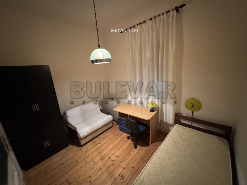 Izdaje se stan površine 62m2 na prvom spratu u kući. Sastoji se od ulaznog hodnika, trpezarije sa kuhinjom, dnevne sobe, dve spavaće sobe, kupatila i terase. Ima poseban ulaz i strujomer. Grejanje je na struju /norveški radijatori/.. Komplet je opremljen nameštajem i svom potrebnom belom tehnikom. Može se izdavati i neopremljen kao poslovni prostor. Lepo je osvetljen i orijentisan. Izdaje se ozbiljnim zakupcima na duži vremenski period. Obavezan depozit u visini jedne mesečne kirije.