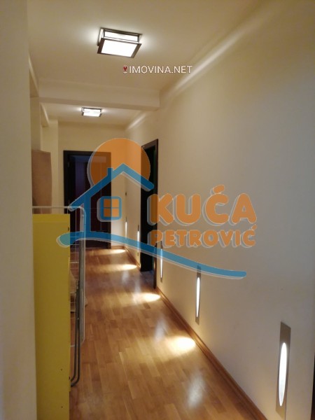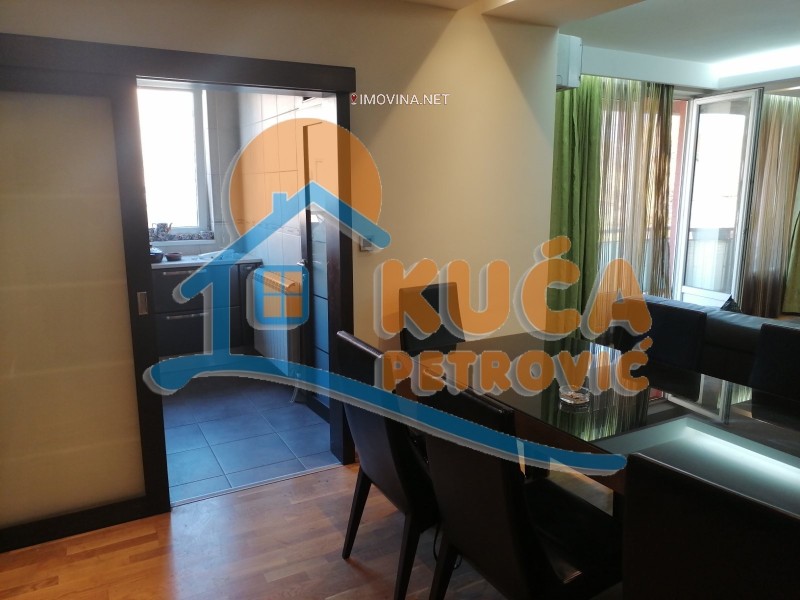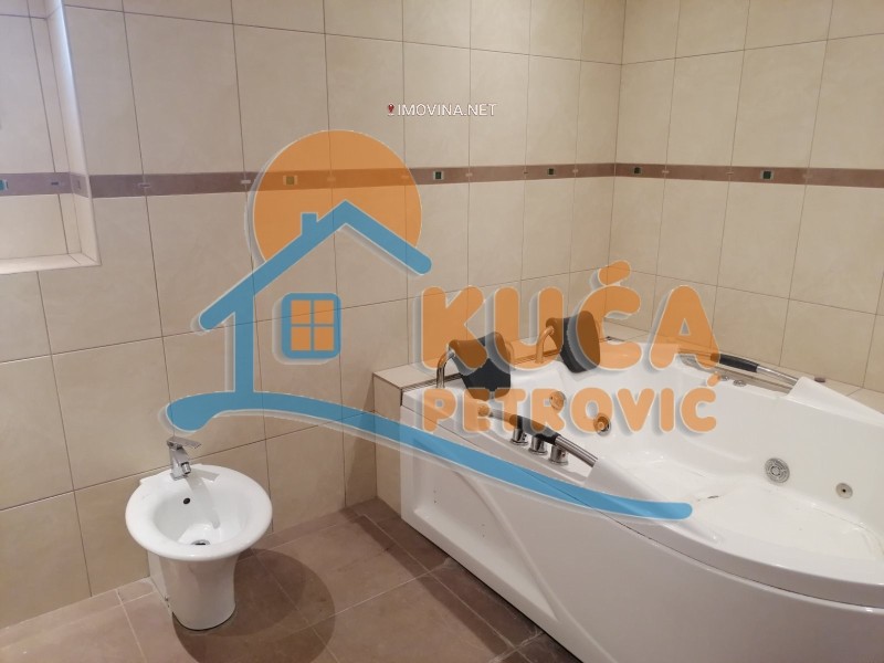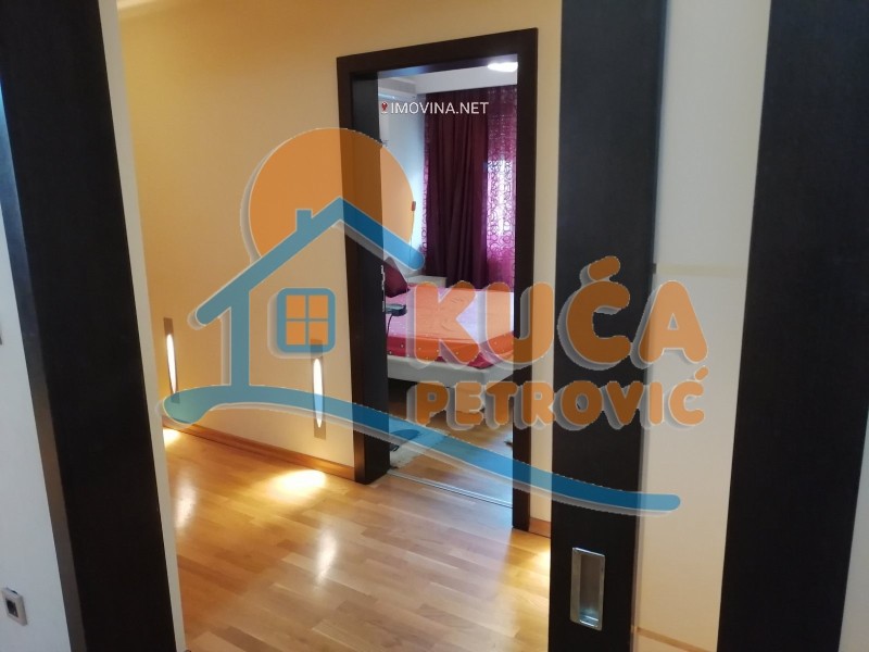Izdaje se luksuzno namešten stan u zgradi u blizini ambulante Rasadnik, na drugom spratu u zgradi bez lifta. Površina stana je 150m2, a struktura je čevorosoban. Stan se sastoji iz ulaznog hodnika, dnevne sobe sa trpezarijom i kuhinjom, tri spavaće sobe, kupatila i dve terase. Grejanje u stanu je centralno ali je trenutno stan isključen sa mreže /moguć priključak ponovo/.Opremljen je novim luksuznim nameštajem i belom tehnikom /djakuzi,kožne garniture../. Veoma lepo je osvetljen i orijentisan. Ima svoje parking mesto.Ima klimu.Pogodan je za poslovne ljude. U blizini zgrade se nalazi sve što je neophodno za normalan život.