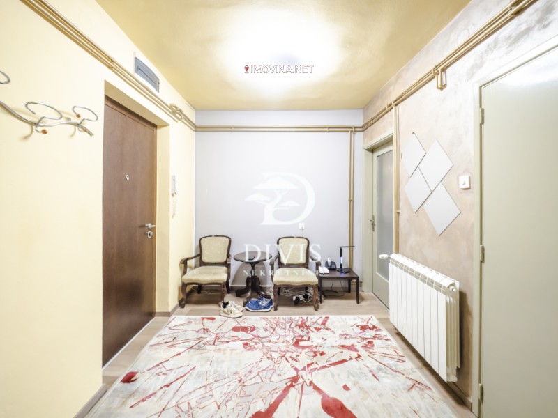 Sastoji se od predsoblja, kuhinje sa trpezarijom, dnevnog boravka, tri spavaće sobe, kupatila, toaleta i ostave. Stan je odlično koncipiran. Prilikom renoviranja stana korišćeni su kvalitetni materijali, postavljena je ALU stolarija sa komarnicima, promenjene su kompletne elektro i vodovodne instalacije. Stan je trostrano orijentisan i veoma svetao.