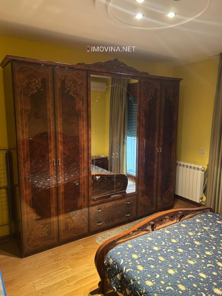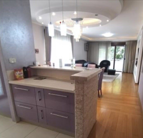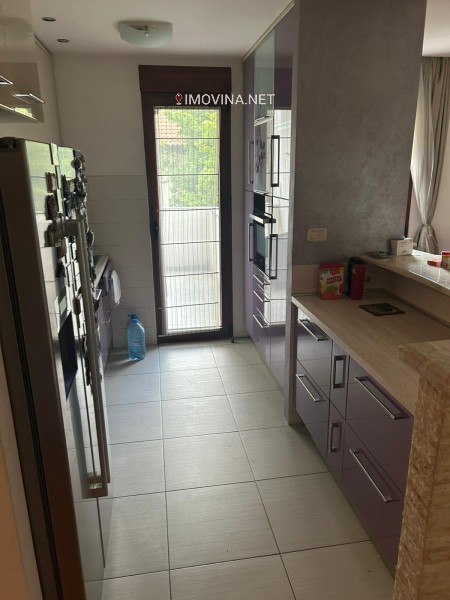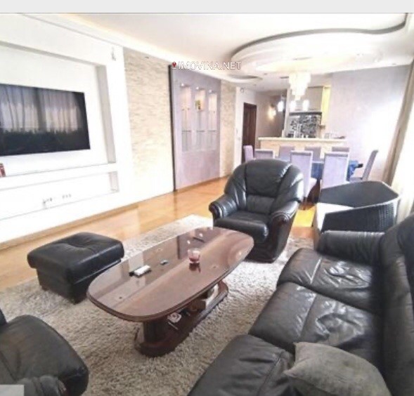 Nalazi se na prvom spratu nove zgrade sa liftom, povrsine 124m2, vrlo funkcionalnog rasporeda. Zgrada je uradjena od najkvalitetnijih materijala. Ulazni hol i stepeniste su oblozeni mermerom, a ima izlaz na dve ulice.