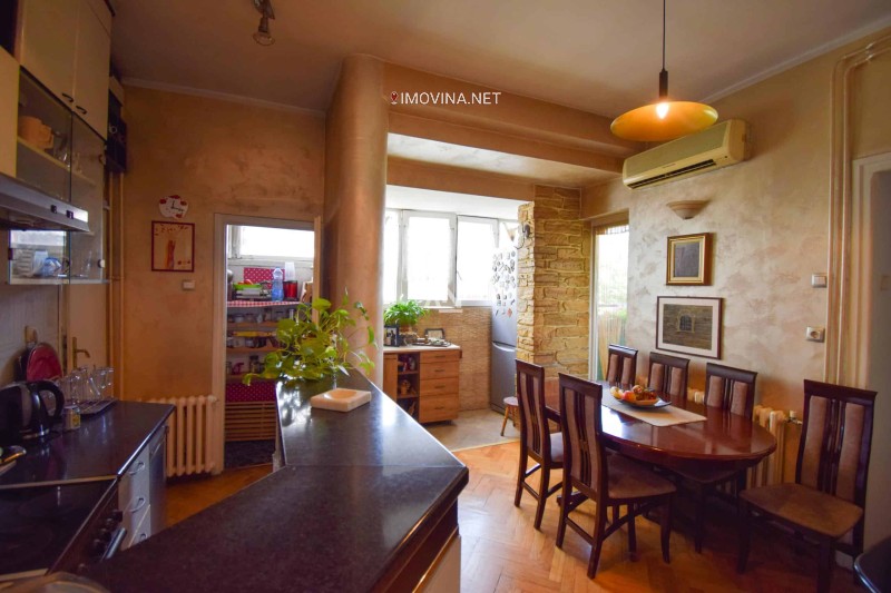 U lepom, mirnom delu Vračara, u ulici Kursulina nalazi se ovaj četvorosoban stan od 112m2 + 6m2 za terasu. Nalazi se na četvrtom spratu u zgradi od četiri. Centralno grejanje, plus stan ima svoj električni kotao (etažno grejanje). Raspored u stanu vrlo funkcionalan, iz velikog predsoblja se ide u sve prostorije. Dnevna i sve spavaće sobe izlaze na francuski balkon koji je duž celog stana sa pogledom na Mekenzijevu ulicu i Kursulinu ulicu. Stan je dvostrano orijentisan. Kuhinja je posebna prostorija i izlati na zasebnu terasu od 6m2. Sa terase se može pristupiti tavanu, visine oko 1,5 m. Stan je prekriven kosim krovom. Svetao, funkcionalan. Sastoji se od hodnika, dnevnog boravka, trpezarije sa kuhinjom, ostavom, tri spavaće sobe, dva mokra čvora (kupatila), francuskog balkona i terase. Stan ima dva zasebna ulaza tako da postoji mogućnost i da se stan pregradi u dve zasebne stambene jedinice. Zgrada poseduje lift i video nadzor, internet i kablovsku. Stan je uknjižen i brzo useljiv.// Telefon agenta: 060/ 4334 686 //Agencijska provizija 2%.