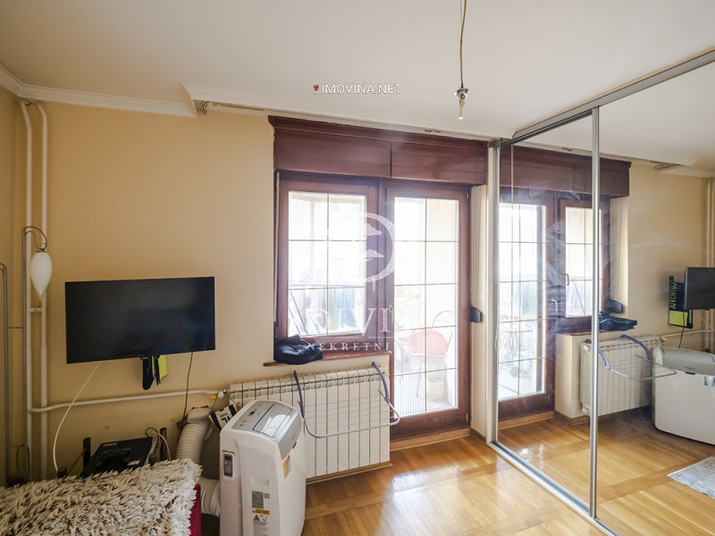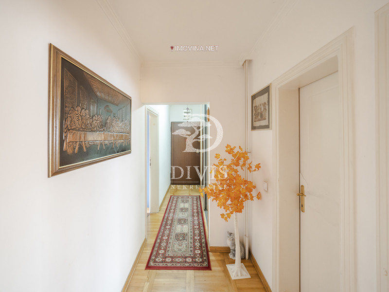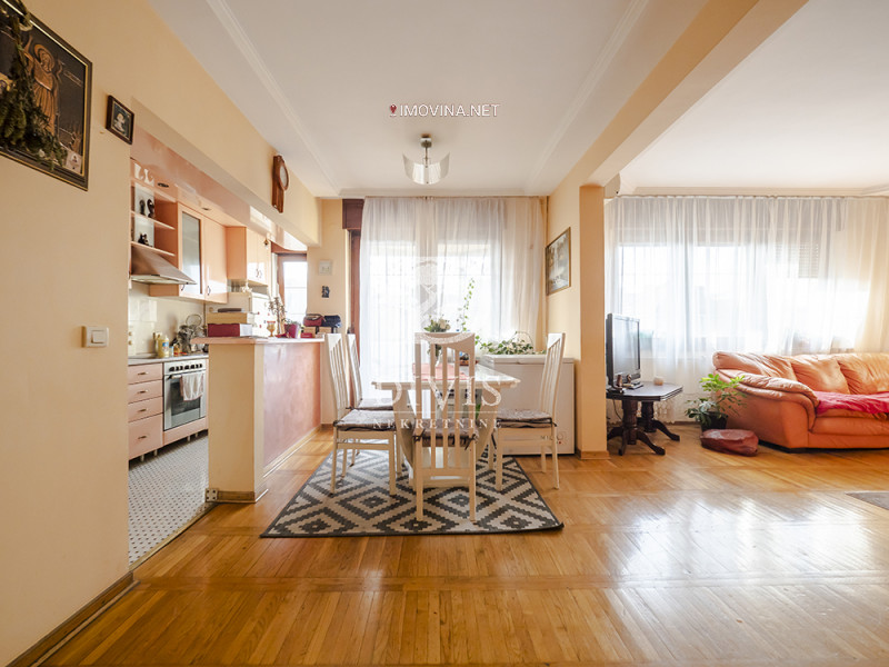 Sastoji se od dnevne sobe sa kuhinjom i trepezarijom, odvojenog spavaćeg bloka sa tri sobe,hodnika sa ugrađenim plakarima, gostinskog toaleta, kupatila i dve lođe čija površina nije ušla u uknjiženu kvadraturu. Stan je dvostrano orijentisan, odličnog rasporeda i funkcionalnosti.