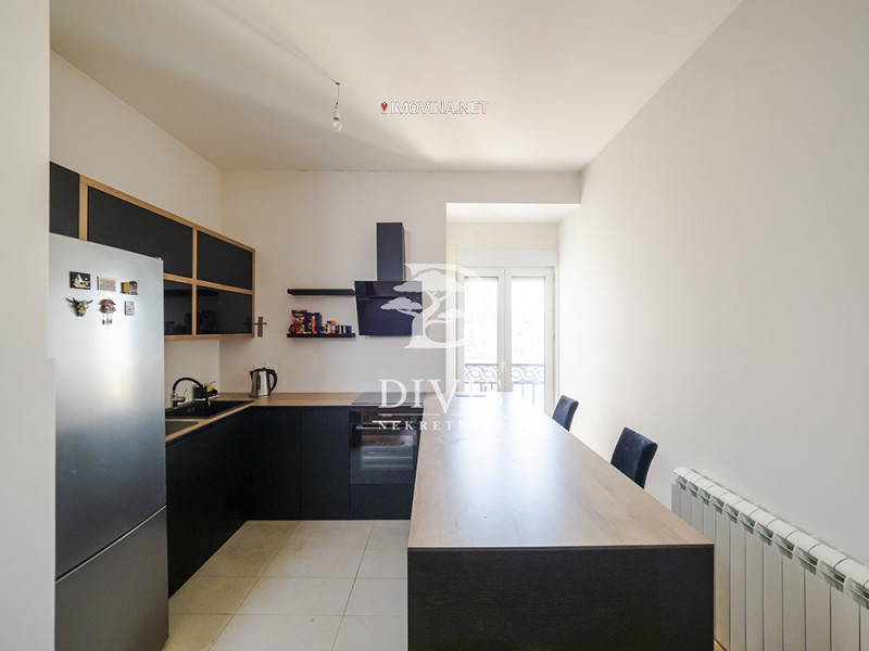 Stan je dvostran sa dosta svetlosti, fasada je izrađena od prirodnog kamena, terase su sa elementima od kovanog gvožđa, alu stolarija sa električnim podizačima. Pruža mir i udobnost, u centru grada i blizini svih sadržaja za komforan život.