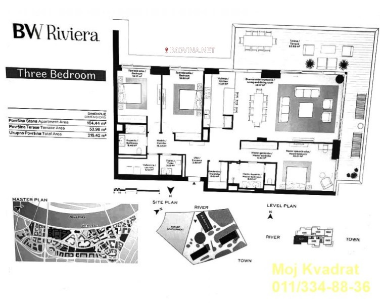 Prostorije: open-space prostor od 49m2 - dnevni boravak sa trpezarijom i kuhinjom, master spavaća soba sa sopstvenim garderoberom i kupatilo, dve spavaće sobe, odvojeno kupatilo, poseban garderober, toalet, vešernica i ugaona terasa od 54m2 sa prelepim pogledom.