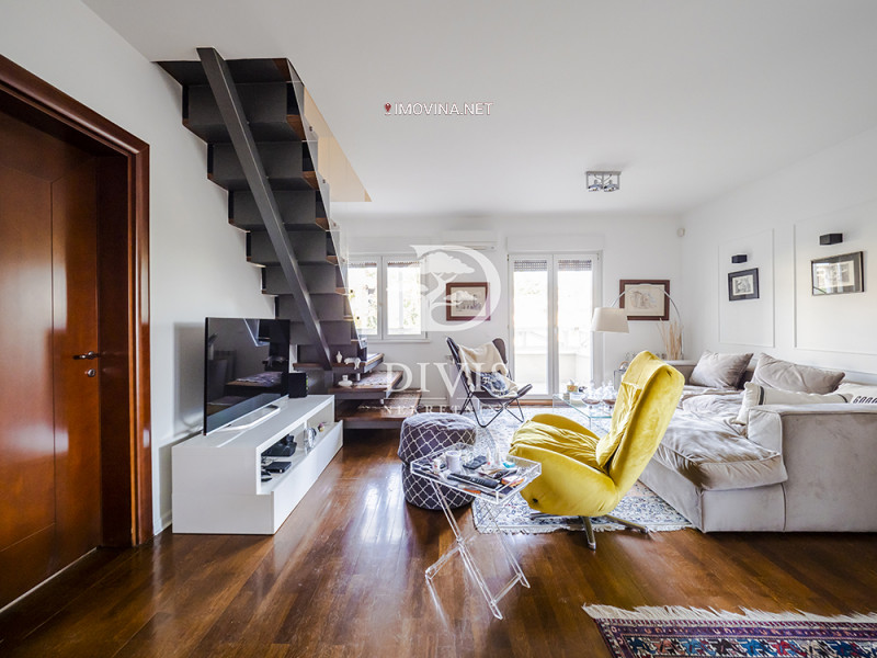 Trostrano i dvorišno orijentisan, osvetljen tokom celog dana, potpuno izolovan od buke. U stanu je postavljana kvalitetna PVC stolarija, hrastov parket I klase. Visina plafona u donjem delu je 2,8m. Pozicija u zgradi i kvalitetna izolacija omogućavaju da stan bude veoma topao tokom zimskih dana. Grejanje na gas.