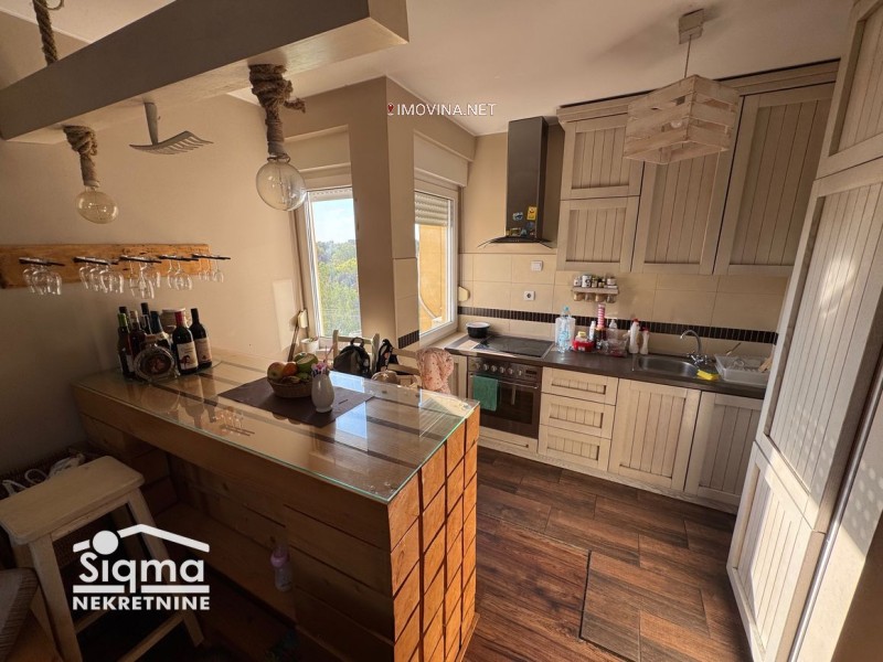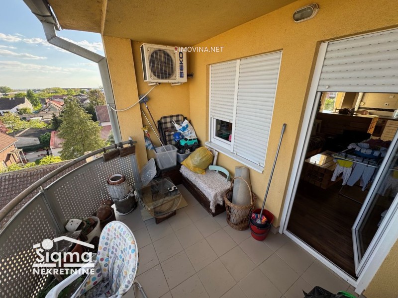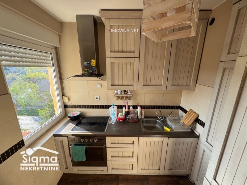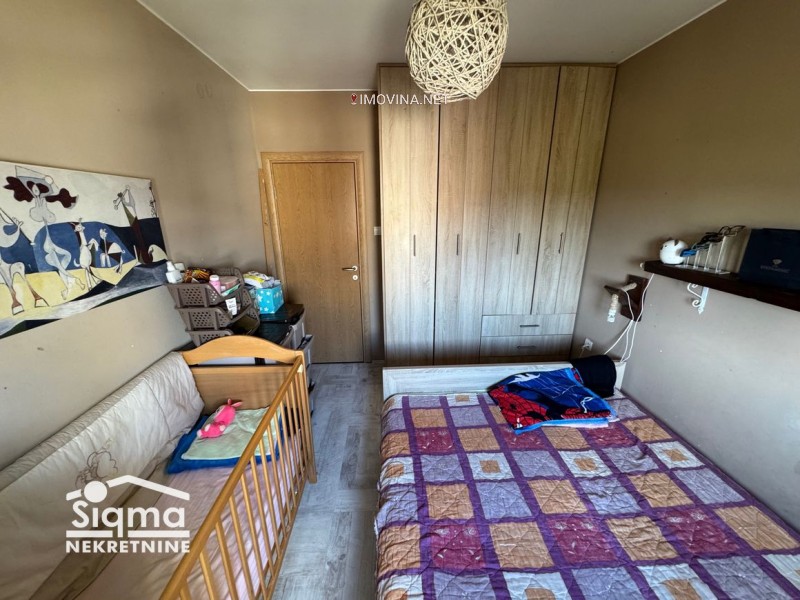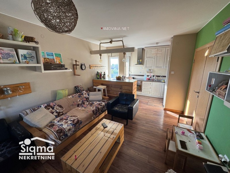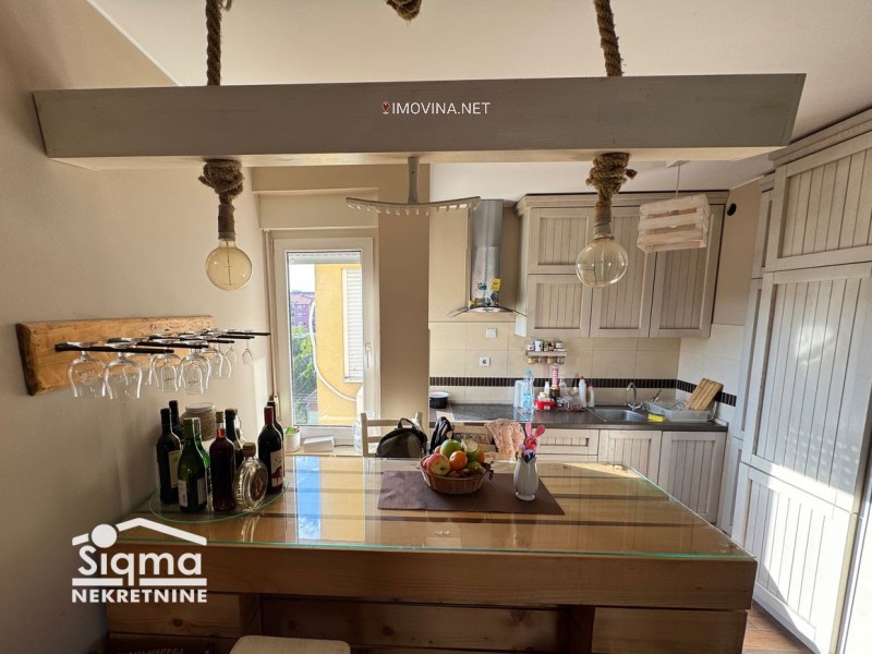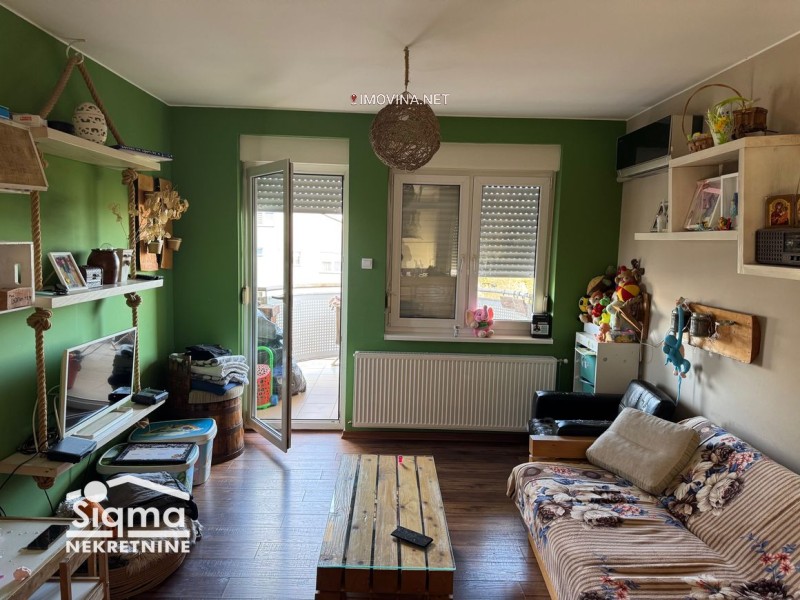 Duplex u novogradnji iz 2016. godine. Nalazi se u neposrednoj blizini Žitnog Trga i ulice Koče Kolarova. Po ulazu u stan nalazi se hodnik koji vodi u dnevni boravak sa kuhinjom i izlazom na terasu, spavaću sobu i kupatilo. Donja etaža ima površinu od 51m2. U hodniku se nalaze tavasnke merdevine koje vode na gornju etažu od 31m2. Na gornjoj etaži se nalazi jedna velika prostorija koju je moguće pregraditi u dve sobe i kupatilo. Stan se prodaje polunamešten. Postavljen je laminat i PVC stolarija. Grejanje je centralno na toplotnu pumpu. Klima uređaj, sigurnosna vrata. Uknjižen, 1 vlasnik.