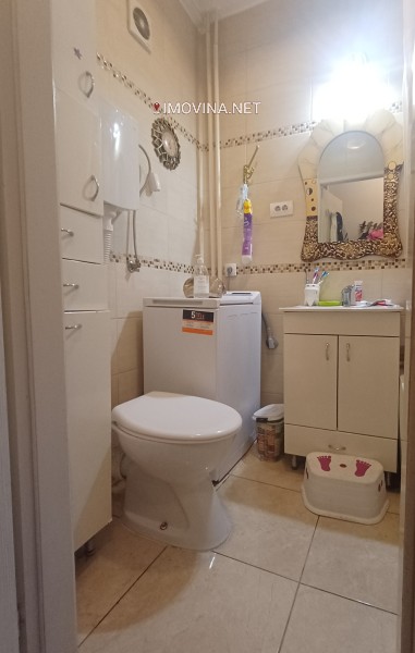 kupatilo sa kadom, odvojenu kuhinju sa trpezarijom i terasom, prostranu dnevnu sobu (koja se veoma lako moze podeliti u cilju dobijanja jos jedne sobe), divnu prostranu spavacu sobu, kao i uredjenu ostavu. Stan ima cist pripadajuci podrum sa napravljenom stalazom za odlaganje. Nalazi se na trecem od sedam spratova. Stan je visoko kvalitetne gradnje i u potpunosti je uknjizen.