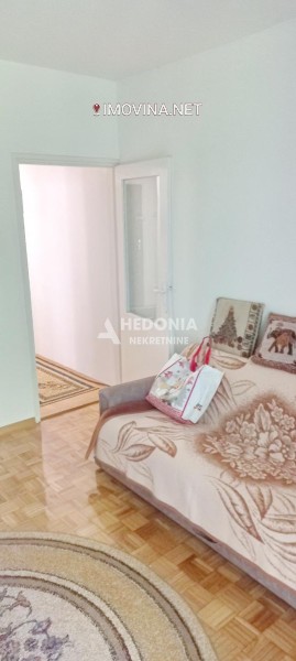 Stan je u izvornom stanju (promenjena PVC stolarija, parket hoblovan i lakiran) i sastoji se iz ulaznog hodnika, kuhinje, trpezarije, dnevnog boravka, spavaće sobe, kupatila, dve terase, ostave i podruma od 6 m2. Postoji mogućnost nadogradnje.
