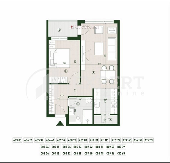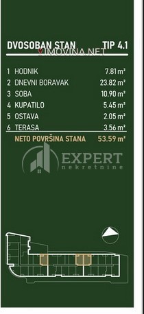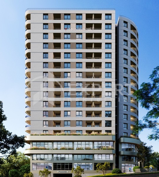 U ponudi je dvosoban stan u savremenom stambeno-poslovnom kompleksu koji čine tri lamele modernog arhitektonskog izraza: